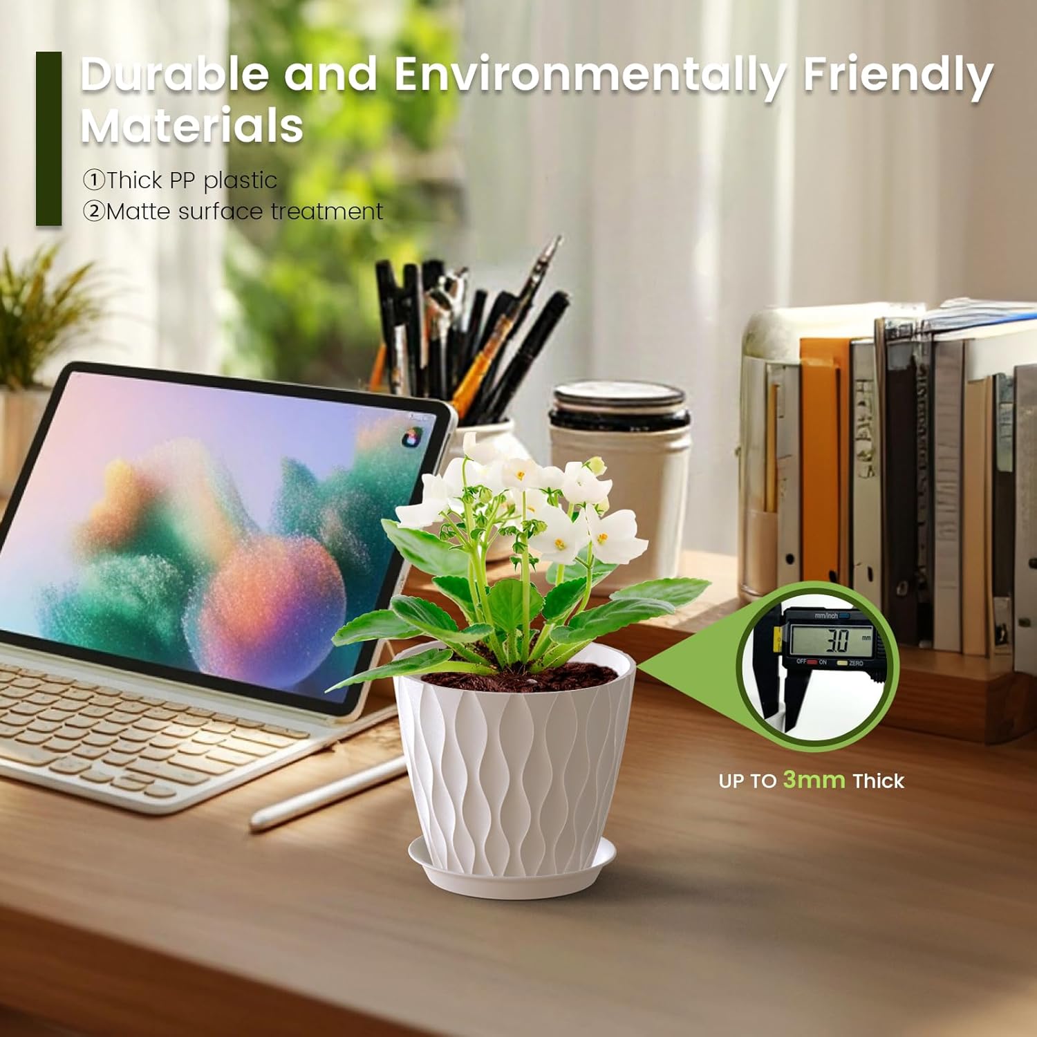 - 【Versatile for Indoor & Outdoor Use】These plastic pots for plants are perfect for enhancing windowsills, desktops, kitchens, bookshelves, gardens, and offices. Compatible with most plant stands and hanging systems, plant pots indoor offer endless possibilities for vertical gardening in any space
