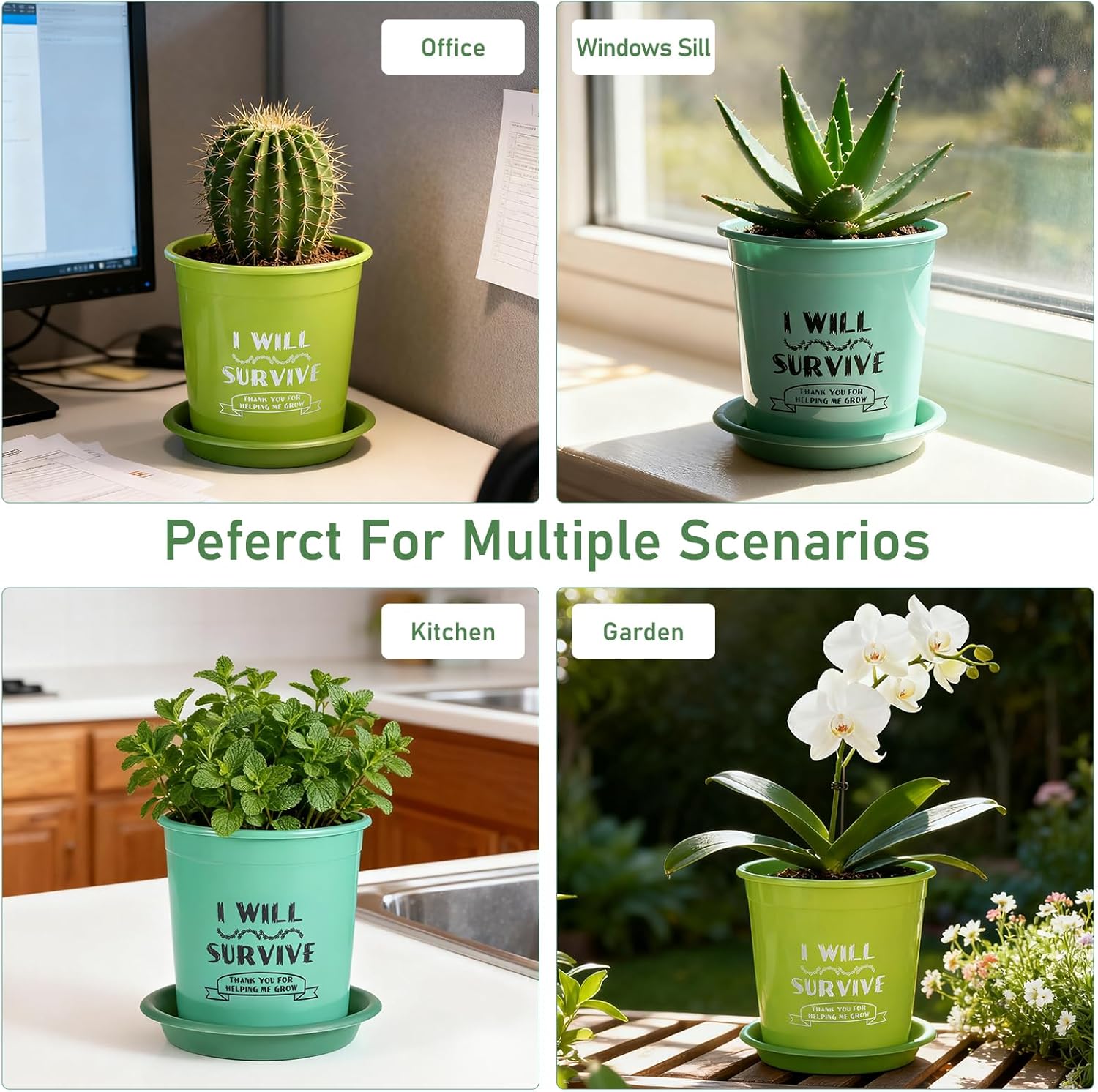 - 【Unique Slogan Design 】- 'I WILL SURVIVE' printed on flower pots for indoor plants turn your space into an energy hub. When anxiety hits, a glance delivers silent encouragement—tackle life's challenges with positivity while helping your plants thrive.