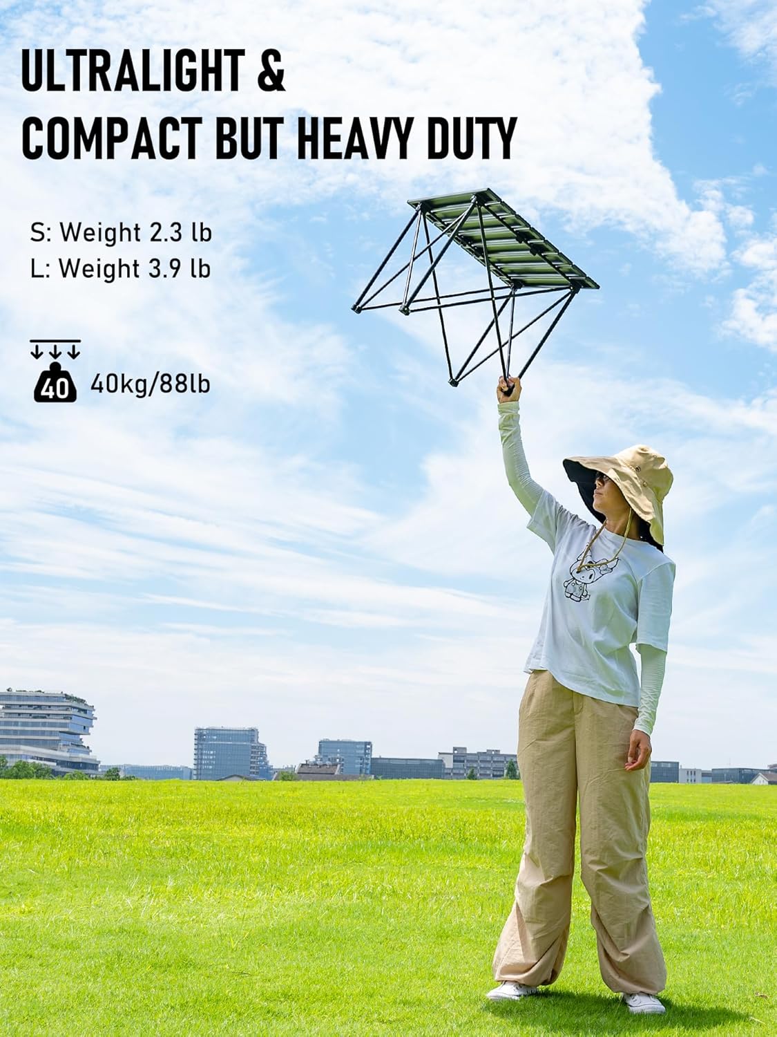 - Ultralight & Compact But Heavy Duty – Made from Aerospace-grade Aluminum Alloy, it weighs just 3.9 lbs but supports up to 88 lbs. Packs down to 23.6 x 6.3 x 2.76 inches. Includes a convenient carry bag for easy transport and storage