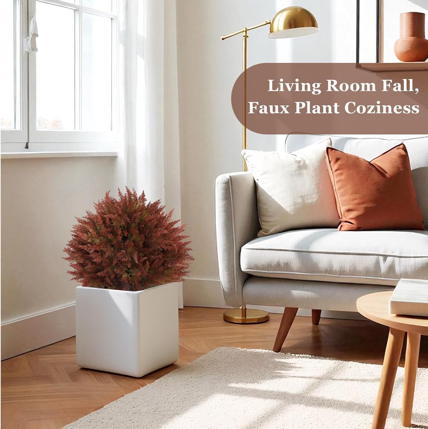 - 【24" Fall Topiary Balls – Vibrant Autumn Ambience】These 24-inch fake plants feature lush, ball-shaped foliage accented with warm red tones, capturing the cozy charm of fall. Perfect for porches, garden paths, and outdoor planters, they bring instant seasonal curb appeal