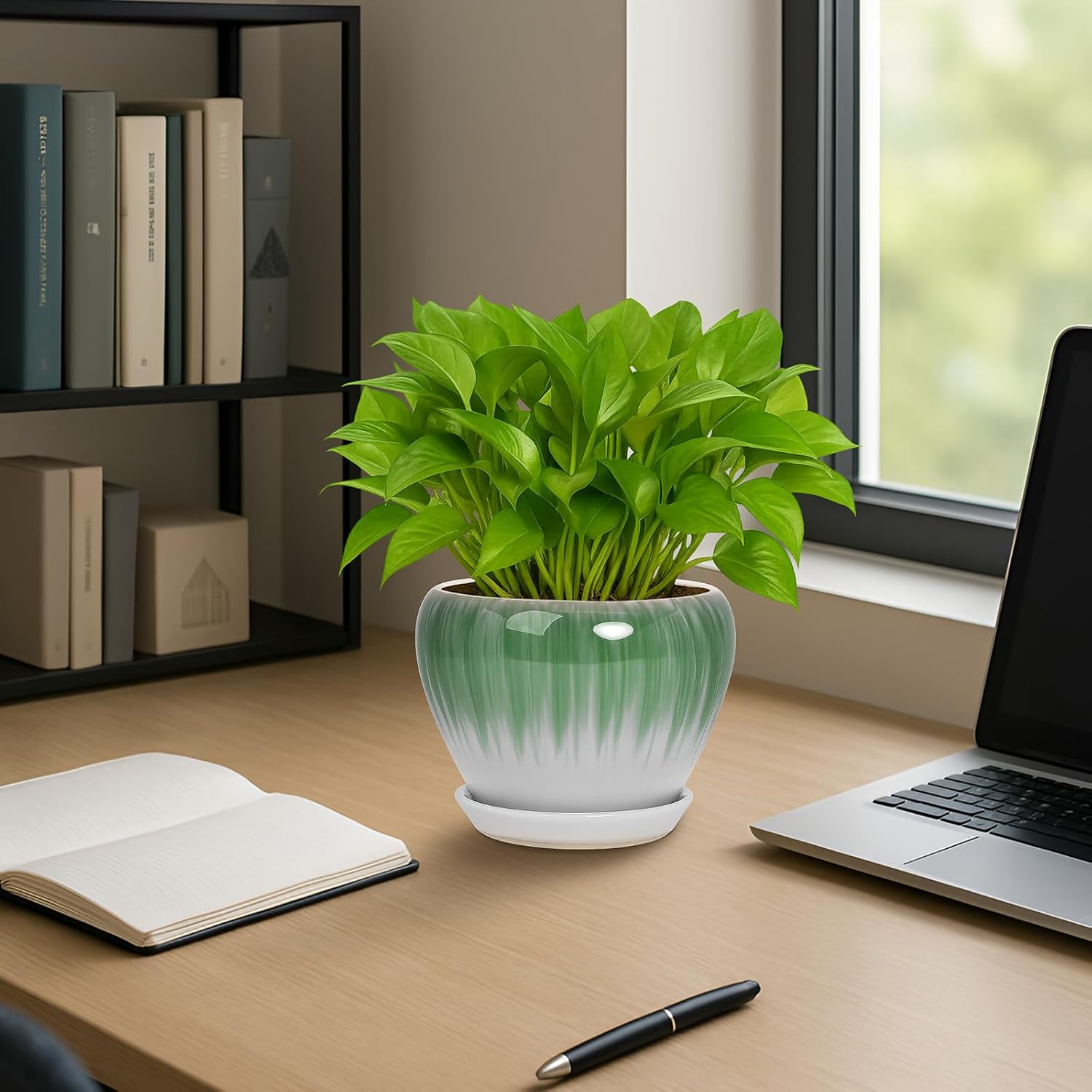 - Plant Pot with Drainage Hole and Saucer: This ceramic plant pot with drainage holes allow for easy plant drainage, beneficial for plant respirationthe, ceramic tray to collect excess water, and the leak-proof mesh reduce soil erosion, Our ceramic planter features a waterproof-coated tray that effectively prevents water from seeping through, allowing you to place the pot anywhere with confidence