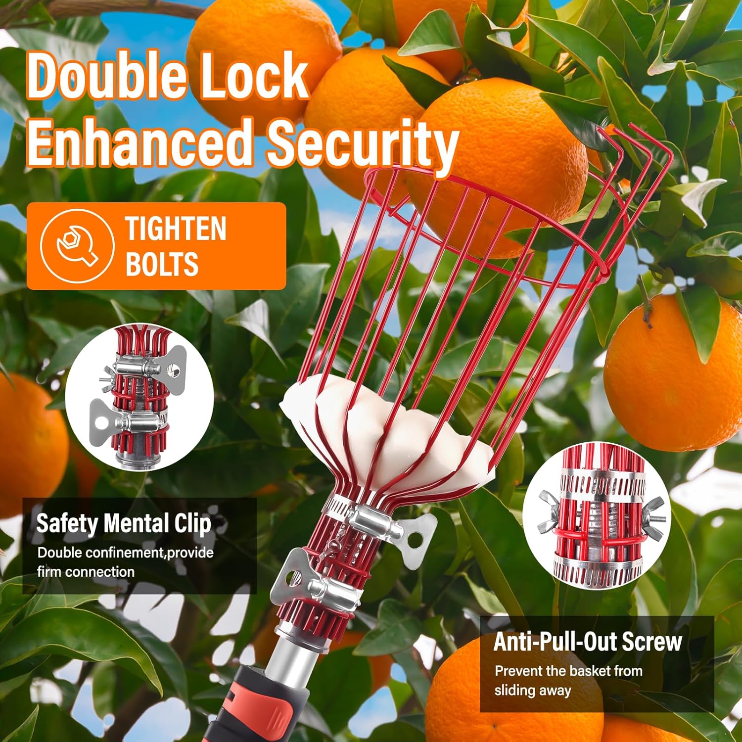 - Ideal Fruit Tree Picker Tool:If you have tall fruit trees our extension orange picker is the ultimate solution for picking oranges, apples, avocados or any other hard to reach fruit. PVC coated metal fruit basket can easily withstand the weight of picked fruits without twisting. ACTREY fruit picker is a great helpere for for picking fruits in safely and efficiently