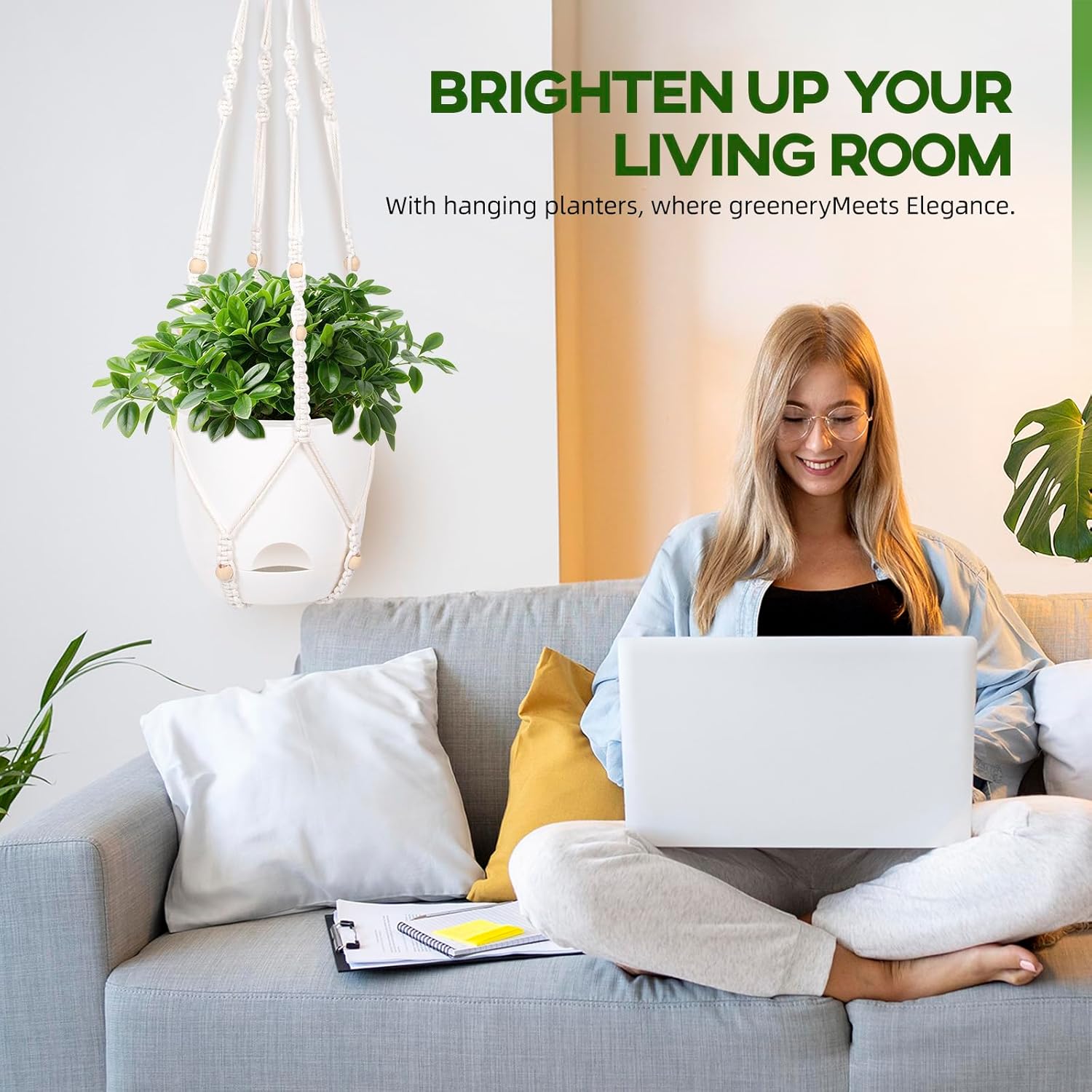 2-Pack 5.7-Inch Self-Watering Hanging Planters for Indoor & Outdoor Plants,34Inch Macrame Hanger Plant Pots Indoor with Drainage,Small Hanging Planters & Baskets,With Two Sets of Hooks(Pure white)