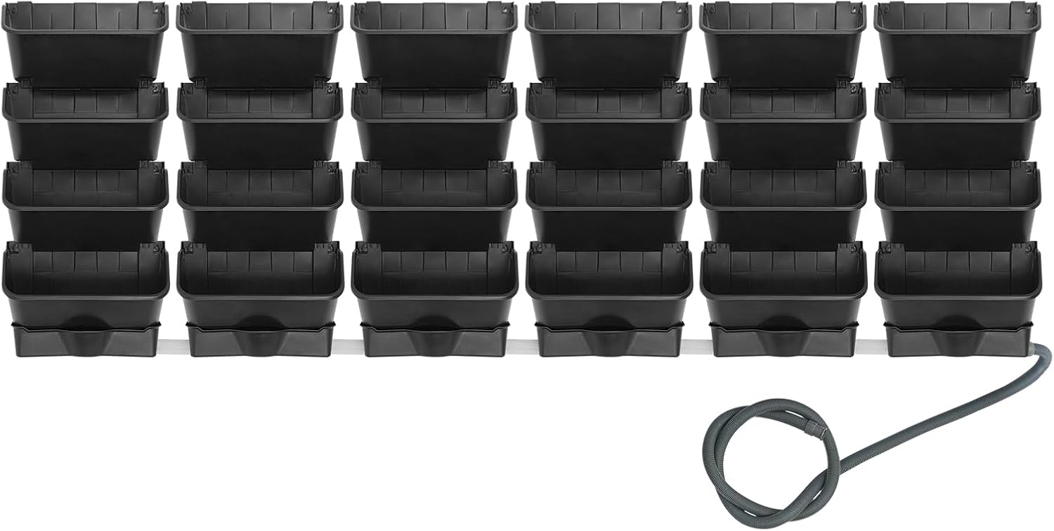 Vertical Wall Planter with 24 Pots, Hanging Garden Plant Flowerpot Holder, Stackable Wall-Mounted Planter, Balcony Planters for Flowers Vegetables Fruits (Black, 24 Pots+6 Drainage Planters&Pipe)