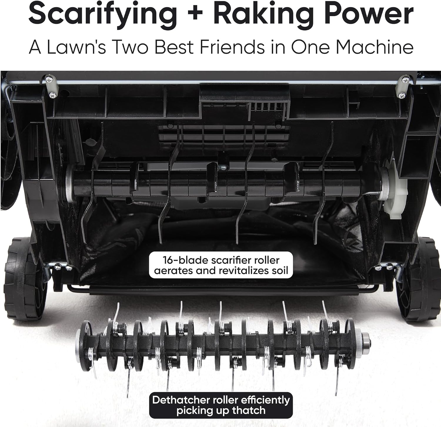 - 2-in-1 Electric Dethatcher and Scarifier with Quick-Switch Blades Dual-function design allows easy switching between dethatching and scarifying blades, making this a versatile 2-in-1 lawn care tool. Perfect for seasonal lawn maintenance, aeration, and removing dead grass and moss buildup.