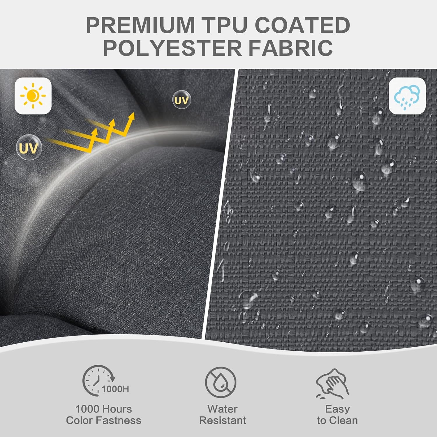 - Fabric Details: Crafted from premium polyester, this cushion features UV-resistant, fade-resistant properties and can withstand over 1,000 hours of direct sunlight exposure without color fading