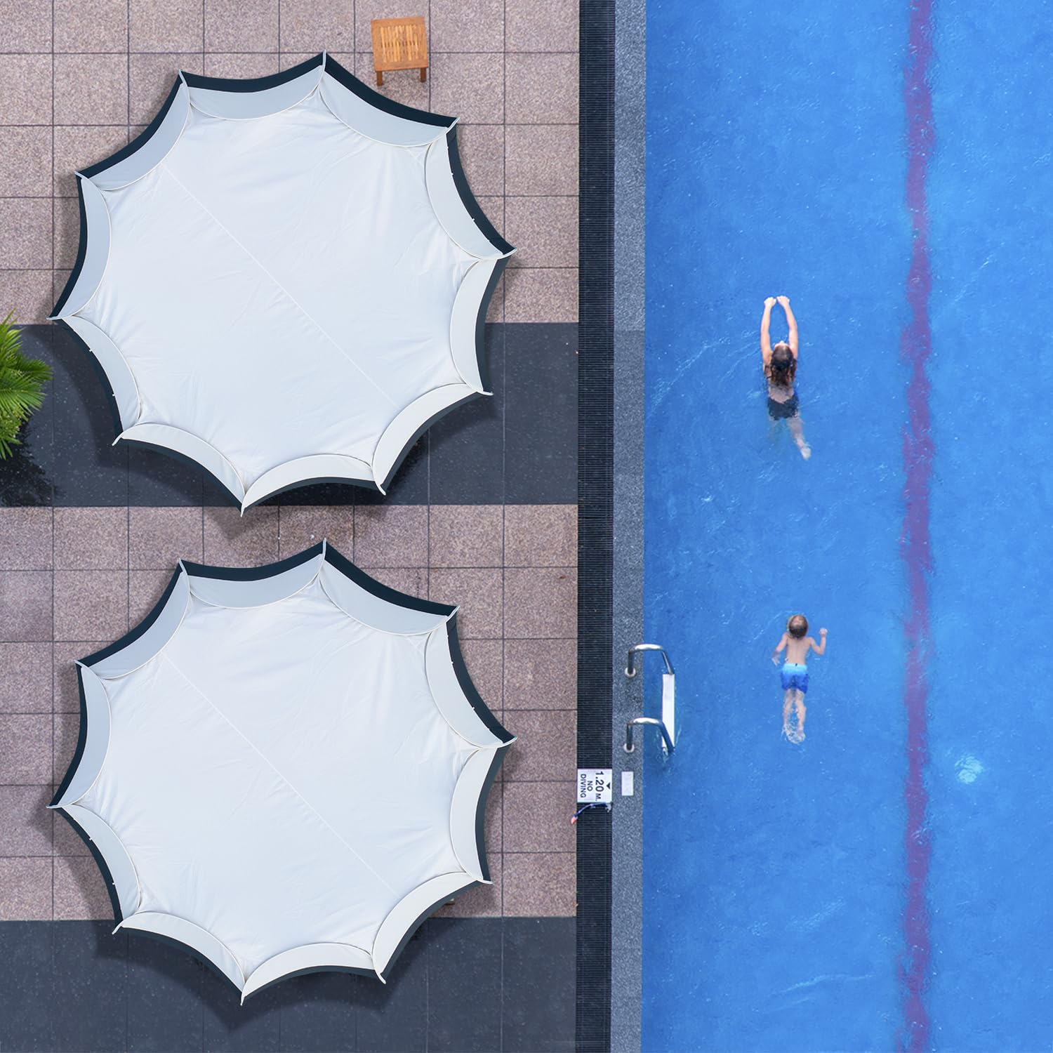 - ☀Patent pending design: fabric top provides all-day UPF 50+ UV protection against burning sun, not waterproof & not rainproof. Two large entrance doors with double side silicone zippers, easy to zip from inside and outside alike. 10 mesh netting screen walls protect your family and food. Extra hooks for your coat, bag or something else. 10 elongated sandbags, 20 guylines and 20 metal mounting stakes, provide extra stability in windy conditions.