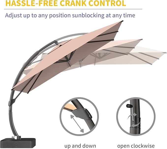 - 【360° Rotation & Infinite Tilt for Full Sun Control】Maximize shade coverage with smooth 360° rotation and precise infinite tilt adjustment. Easily block sunlight from any angle—perfect for poolside relaxation, patio dining, or backyard gatherings.