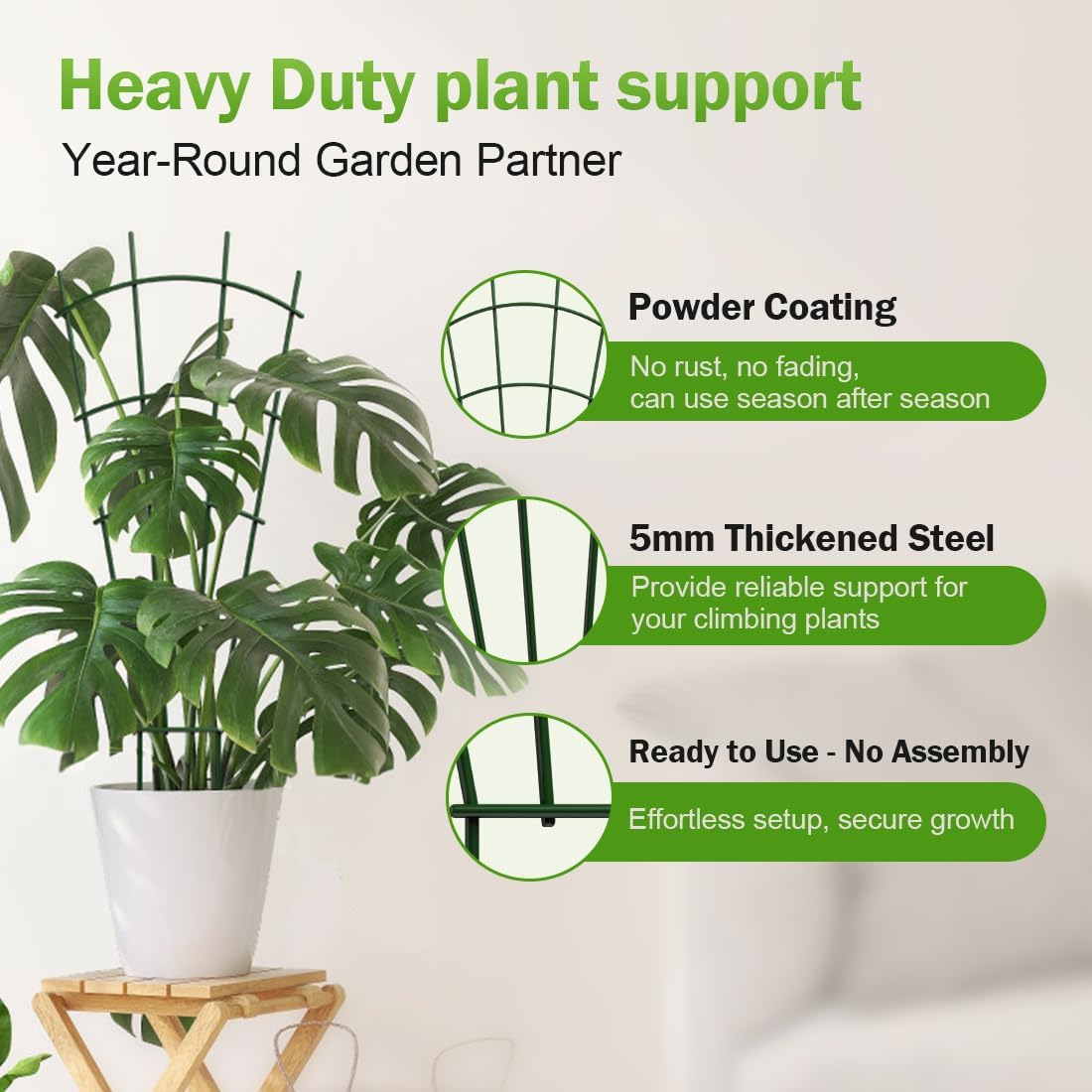 - ā” Effortless Setup & Secure Hold---Enjoy instant use ā no frustrating assembly required! Each plant trellis comes ready as one solid piece. Includes 164 ft twist ties for plants securing and fixing, ensuring stability even in wind.