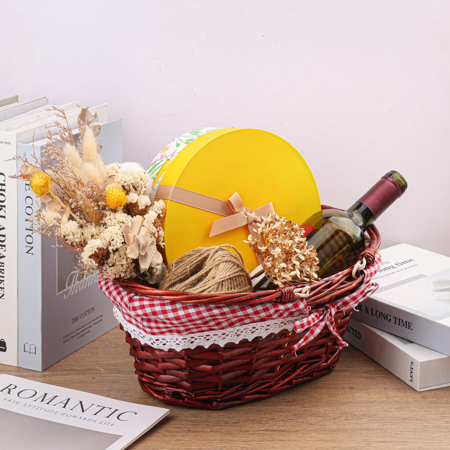 - 【Durable Material】 Crafted with premium willow and a Red Checkered Lining, this Hand-Woven wicker Picnic Basket is not only durable but also natural , adding a touch of natural elegance to your home or outdoor activities.