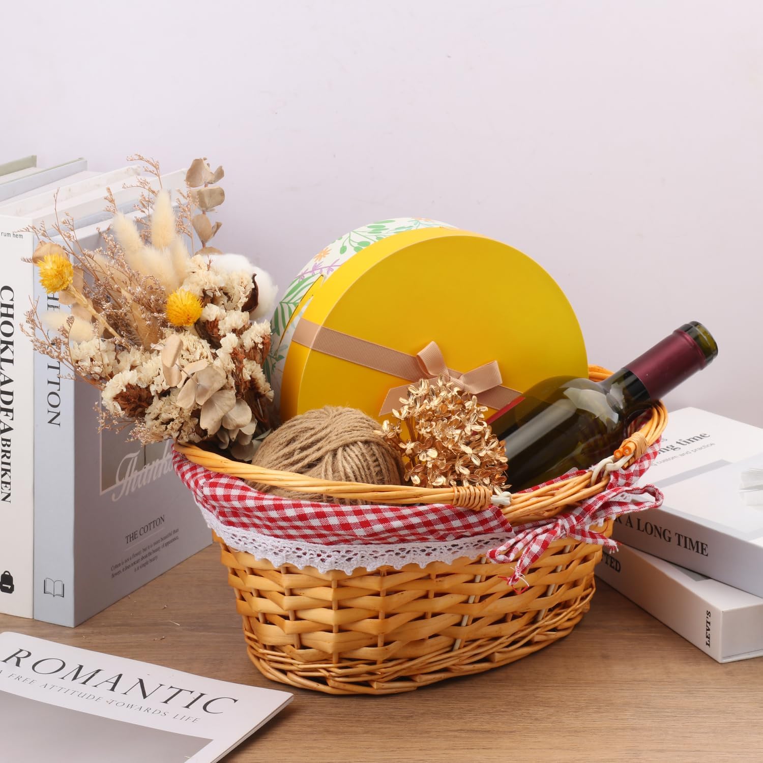 - 【Durable Material】 Crafted with premium willow and a Natural Red Checkered Lining, this Hand-Woven wicker Picnic Basket is not only durable but also natural , adding a touch of natural elegance to your home or outdoor activities.