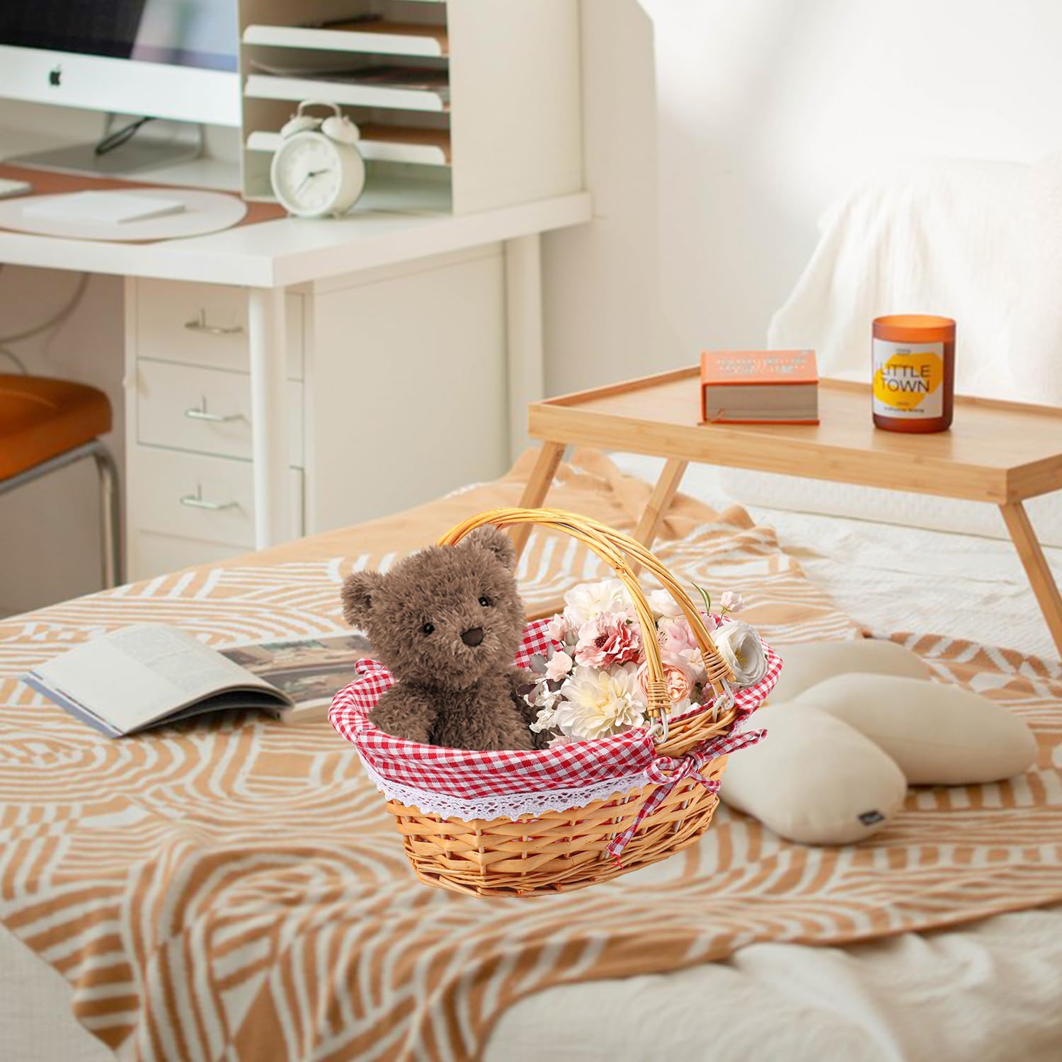 2 Pack 12.6 Inch Natural Wicker Basket with Checkered Lining, Oval Wicker Woven Basket with Handle, Willow Woven Picnic Baskets for Picnic, Camping, Party(Small)