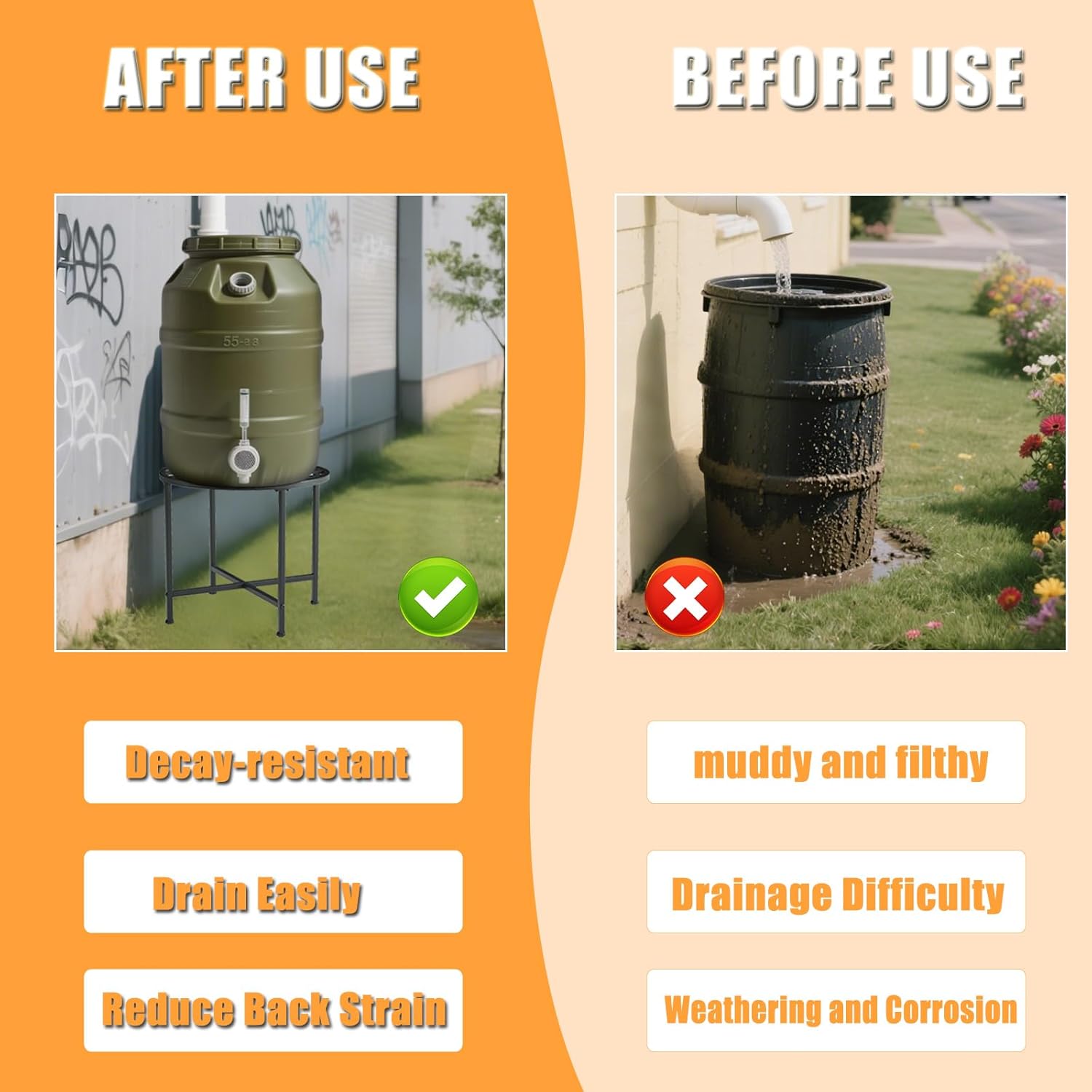 - [Worry-Free Purchase]: Your satisfaction is our top priority.LYUND Rain Barrel Stand will come with a rigorous inspection, and if you have any questions or concerns, our professional customer service team is ready to assist you. Invest in our rain barrel stand today and experience the convenience it can bring to your home!