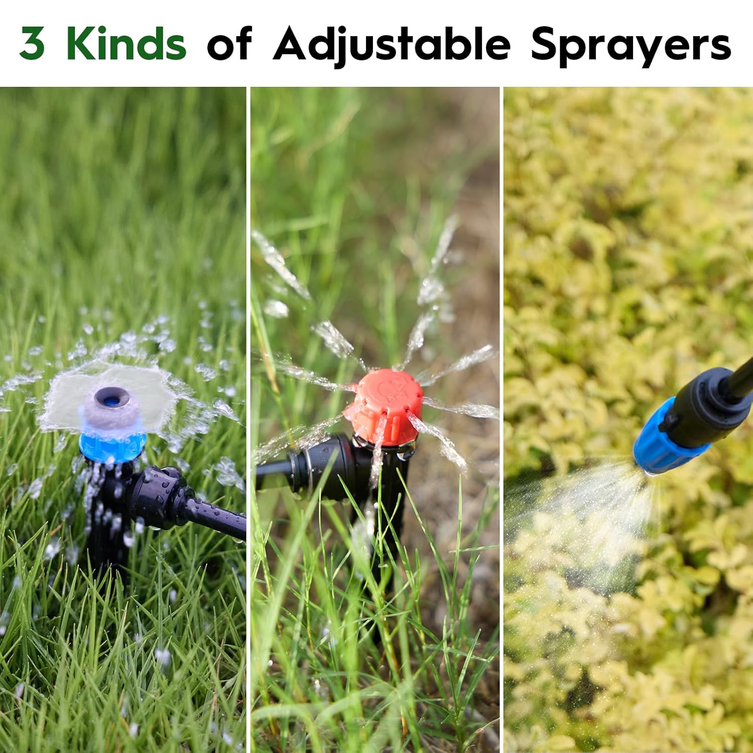 - Wide Applications: This Drip Irrigation System designed for outdoor space is suitable for Flower Beds, Greenhouses, Lawns, Gardens, Raised Beds, Flower Pots, Atomization, Roof Cooling, Vegetable Beds, Swimming Pool Mist Cooling and more. Our Drip Irrigation Kit can meet the irrigation needs of different scenarios, completely solving common problems such as uneven watering and frequent adjustments.