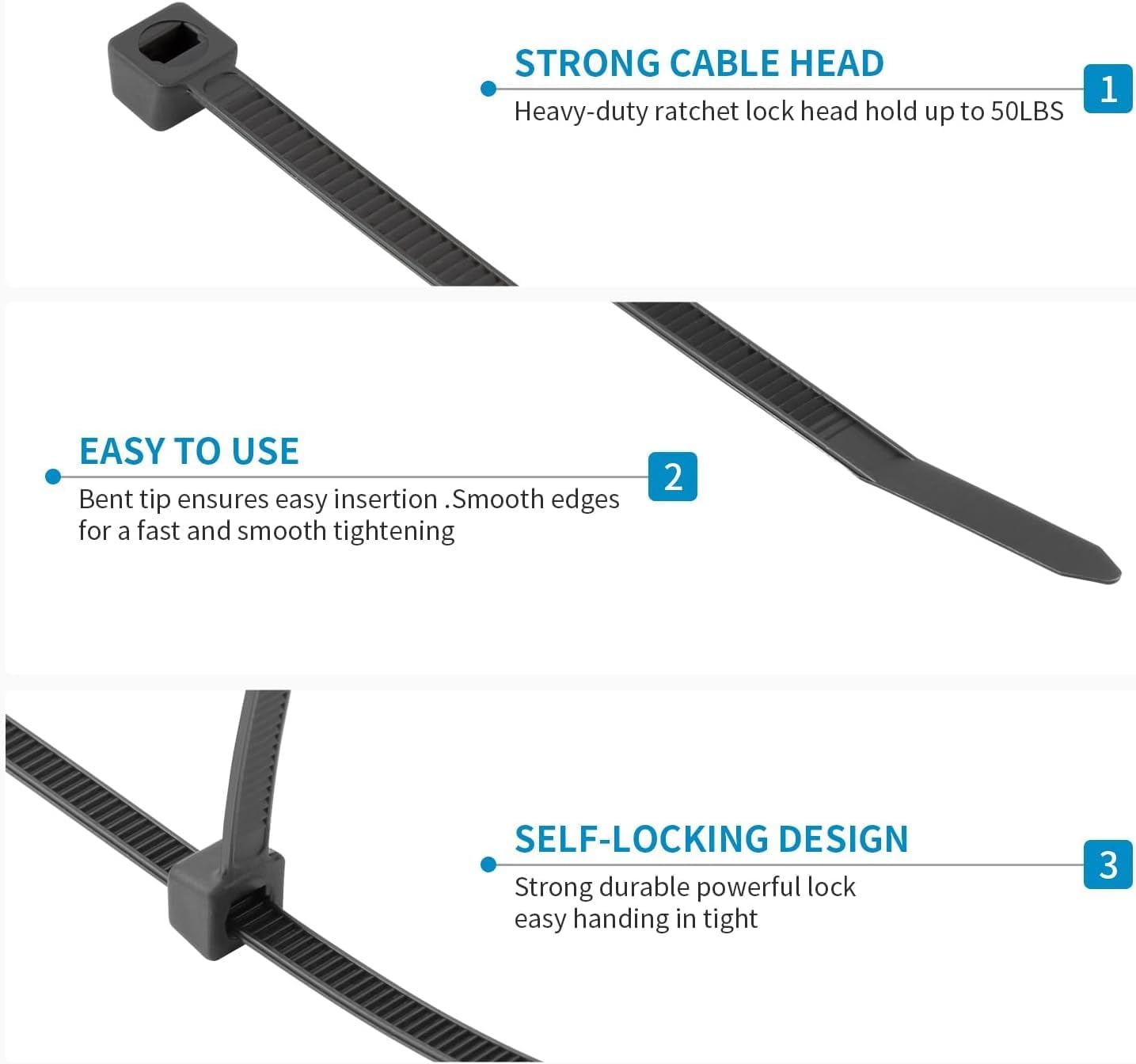 - ★【Great Design】Self-locking fastener design, sturdy and durable, easy to operate. The width of our cable tie is 0.18inch/4.8mm, which makes the cable tie stronger than the same size cable tie on the market and tensile strength could handles most purpose of binding in life