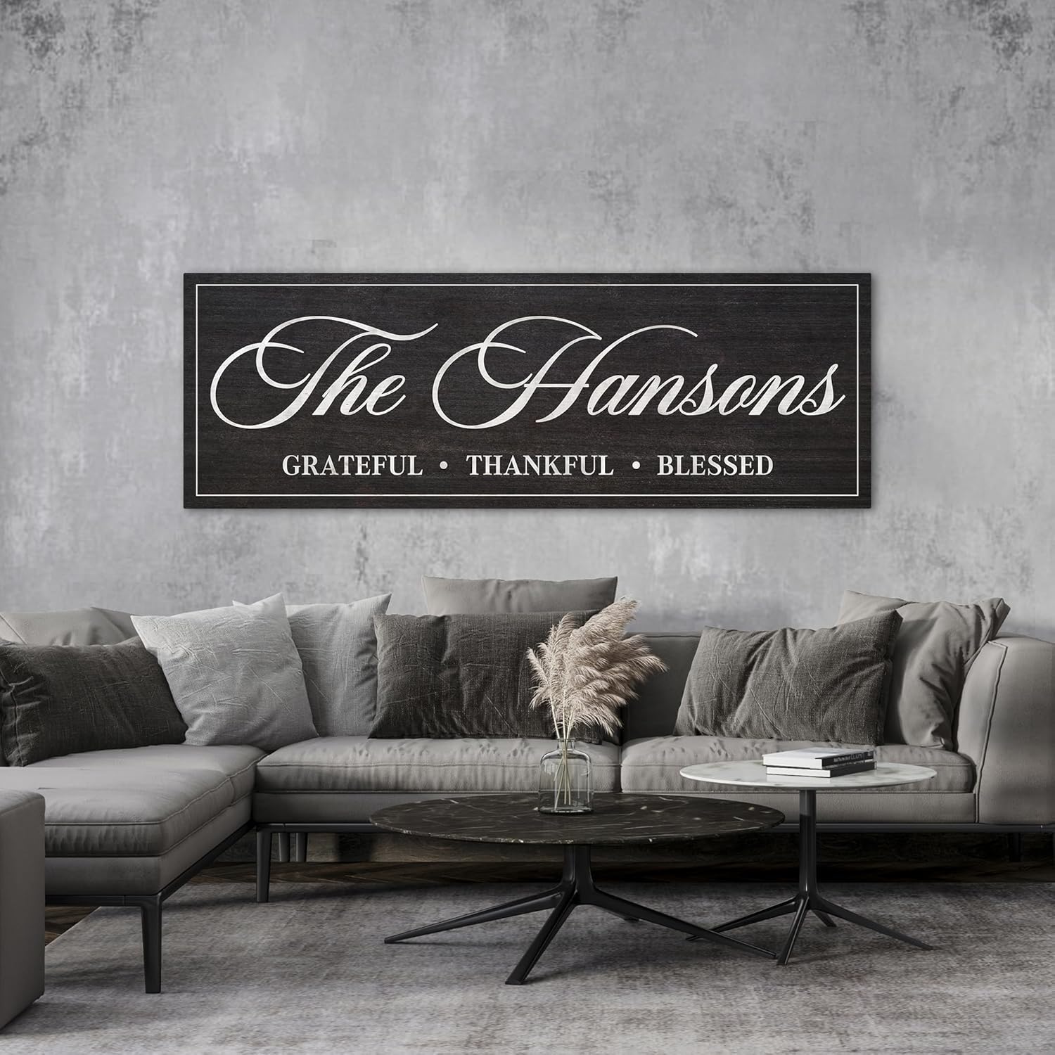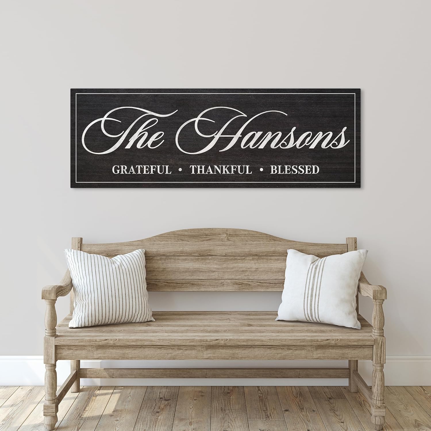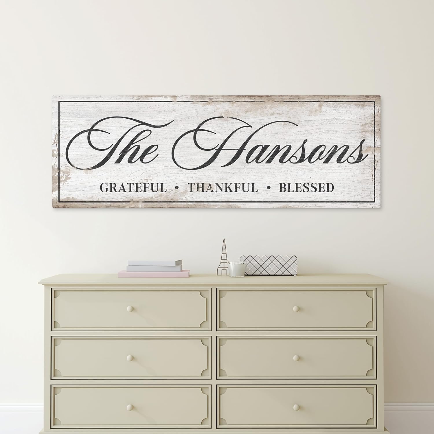 AWESOMETIK Personalized FAMILY NAME Sign Canvas THANKFUL • LOVED • HAPPY • BLESSED Custom Sign, Home Sign, Cabin Sign, Basement Sign, Home Bar Decor