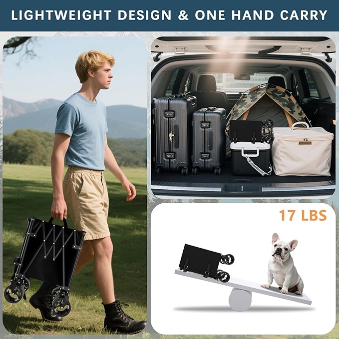 - 【All-Terrain Wheels with Brake & Adjustable Handle】 - The folding wagon comes with two front 360° swiveling off-road wheels that have brakes, ensuring a smooth pull and easy transport on most kinds of ground surfaces like the cobbled road, asphalt, dust, and grass. The adjustable handle features rebound function will not drop to the ground, no need to bend down and pull up the handle!