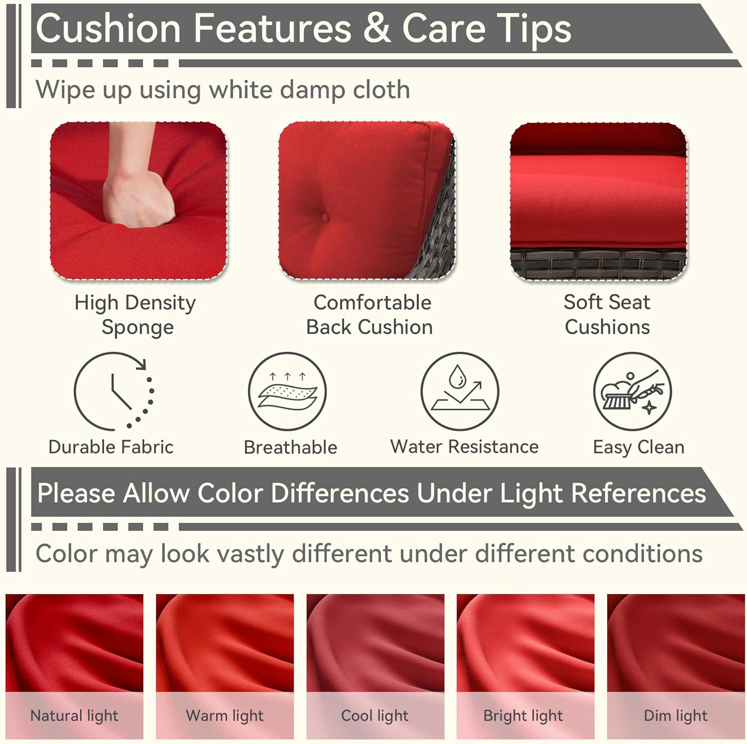 - [Easy-Clean Cushions] Wipe with a white damp cloth for easy clean. Allow for color differences in different ambient light and displays