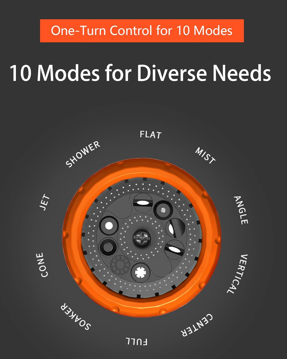 - 【10 Spray Modes】: With a unique design, it features up to 10 different spray modes that can be easily switched to meet the needs of various scenarios such as watering the garden, greening the lawn, bathing pets, and washing cars. Whether it's gently watering young seedlings or powerfully rinsing stubborn stains, it can precisely adapt.