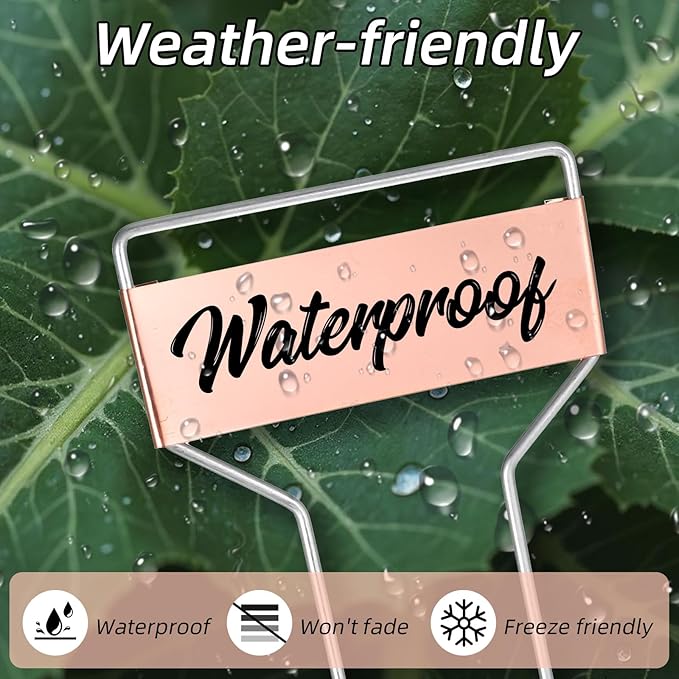 - 【Weatherproof & Strong】 Built with silver copper plates and galvanized steel stakes, these metal plant labels withstand sun, rain, and moisture, resisting rust and damage for years