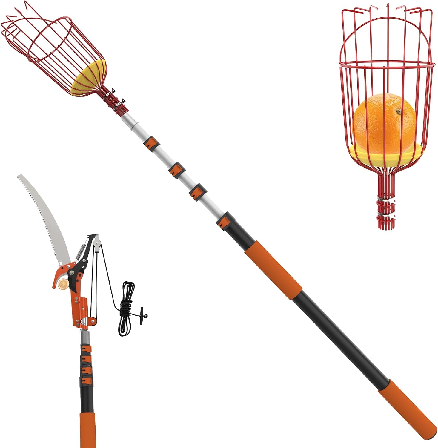 - Precision Picking Without Fruit Damage: The LAANPOLE fruit picker and saw boasts over 26FT of telescopic reach. This fruit picker pole with basket telescoping has an adjustable length ranging from 5 to 20FT. It comes with a large-capacity, 5-inch diameter fruit picker basket . The carefully engineered structure allows for accurate hooking of fruits during picking, effectively preventing damage to the fruit, making it an ideal fruit tree picker tool.