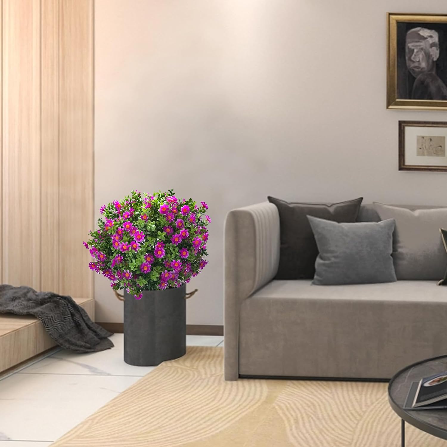 - Durable & UV Resistant – Crafted from premium silk and plastic, these faux plants are weatherproof and UV-protected, keeping their vivid colors and shape season after season, even under sun and rain.