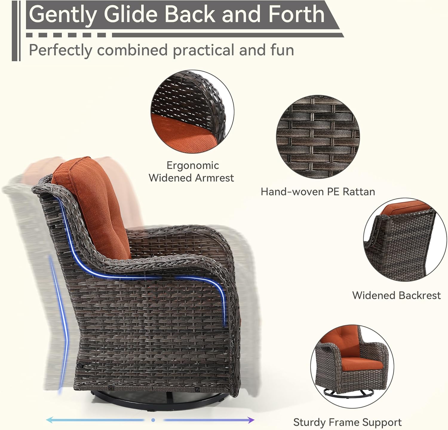 6 Pieces Outdoor Furniture Set - Patio Wicker Swivel Rocker Chair Set of 4 and 2 Side Table, Orange, Mixed Brown Rattan, Suitable for Porch, Yard