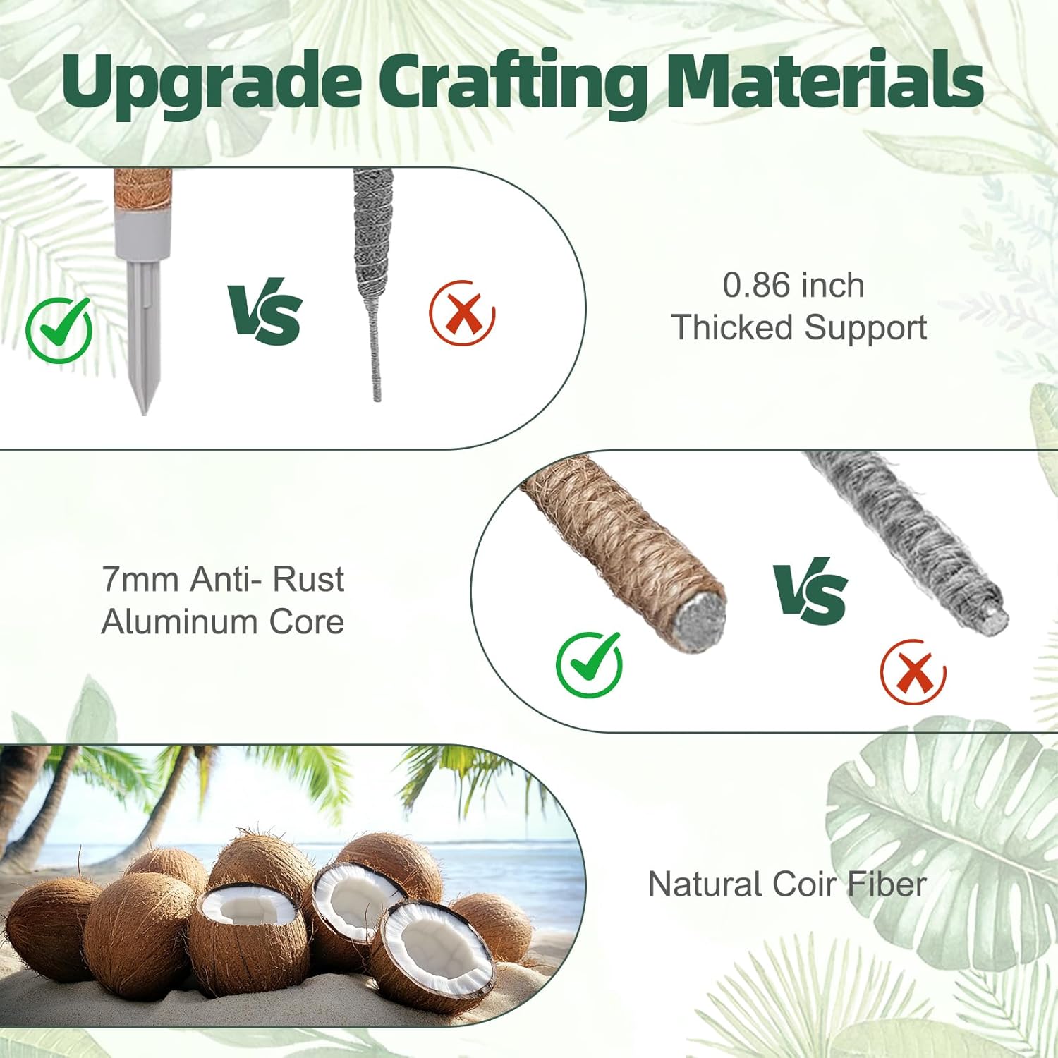 - 【Aesthetically Support Plant's Upward Growth】: The plant support maded of natural Coir fiber, are highly absorbent, effectively preventing the aerial roots from drying out and allowing the plant to grow more vigorously. Due to the flexible bendable design and inserted 7 mm aluminum core, these plant sticks provide more study support and an attractive visual element for your plants!