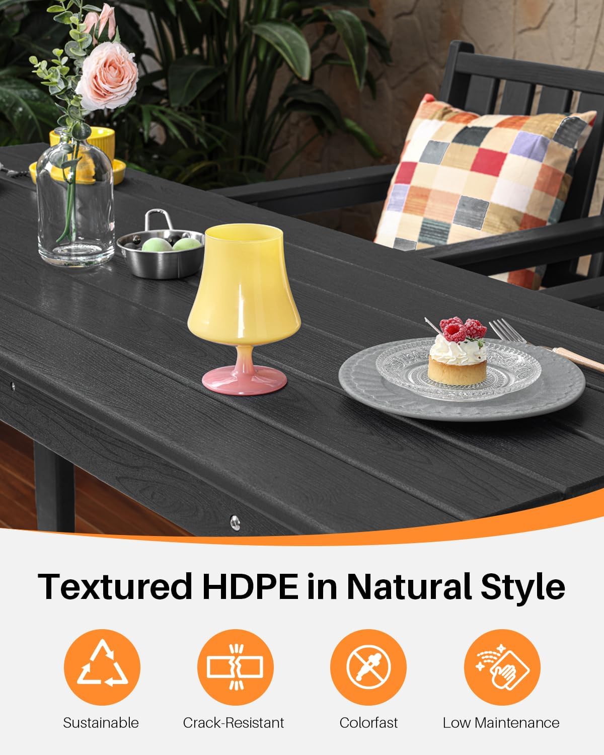 3 Pieces HDPE Outdoor Bar Table and Chairs Set, Tall Adirondack Chairs Set of 2 with Rectangular Bar Table, Patio Bar Stools Set, HDPE Outdoor Patio Bar Set for Balcony, Porch, Deck, Obsidian