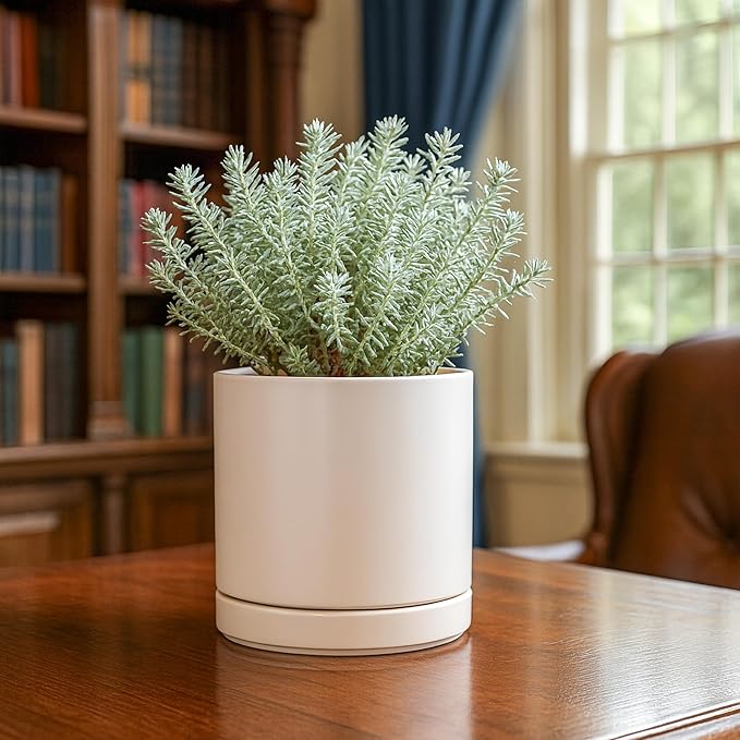D'vine Dev Set of 2 Plants Pots, 6.5 Inch Ceramic Planter Pot for Plants with Drainage Hole and Saucer, Oatmeal, 94-V-C-8