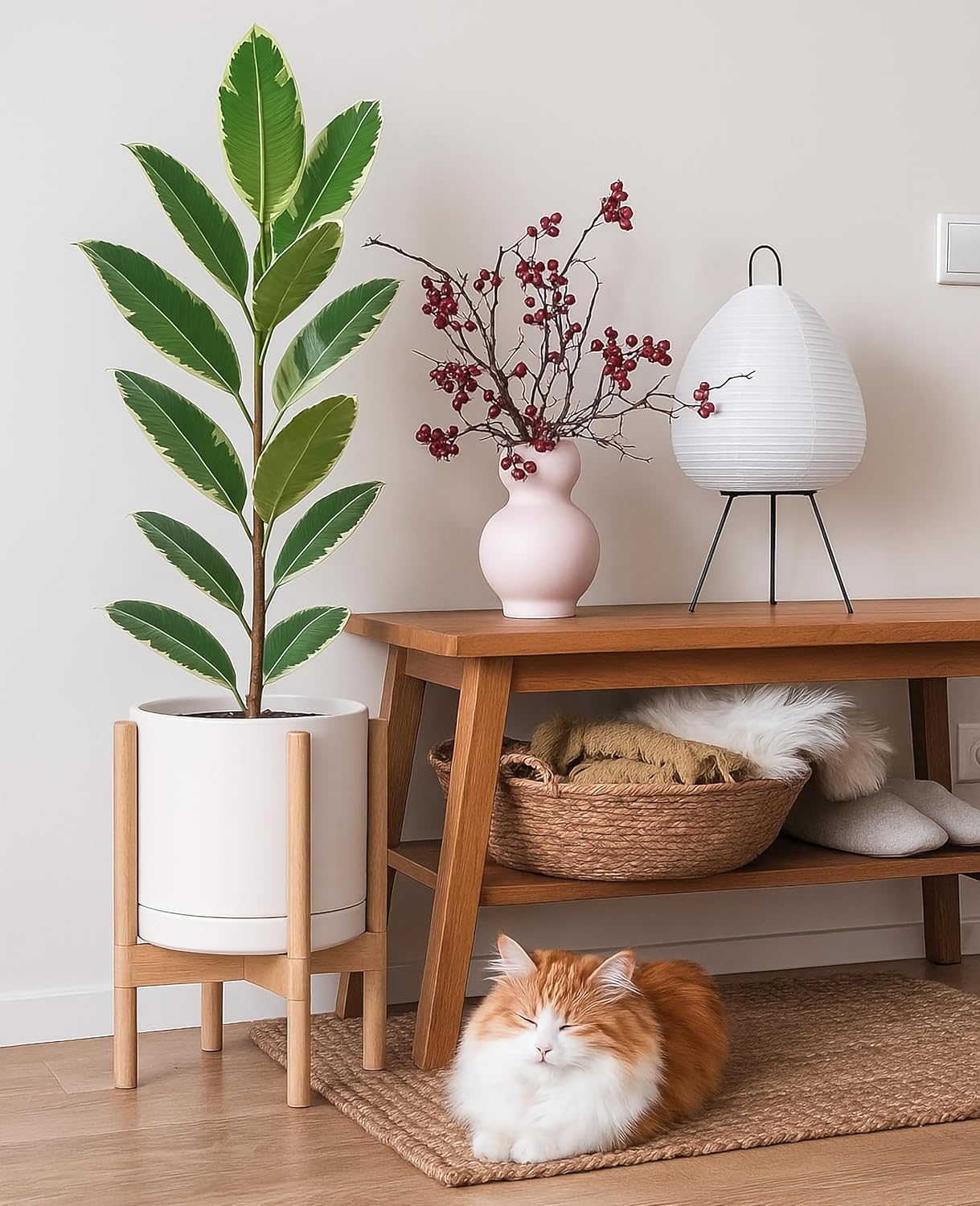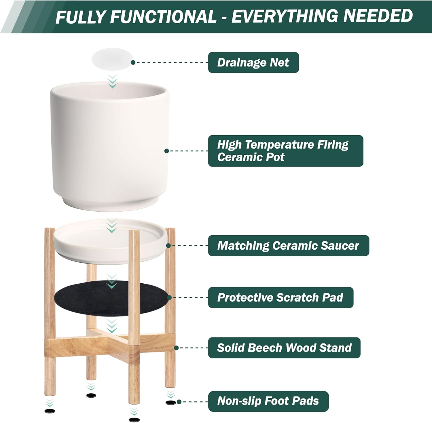 - A Complete Set: Mid-century ceramic planter, combined with a natural color, sculptural, solid wood stand that match perfectly together and looks great in anywhere.