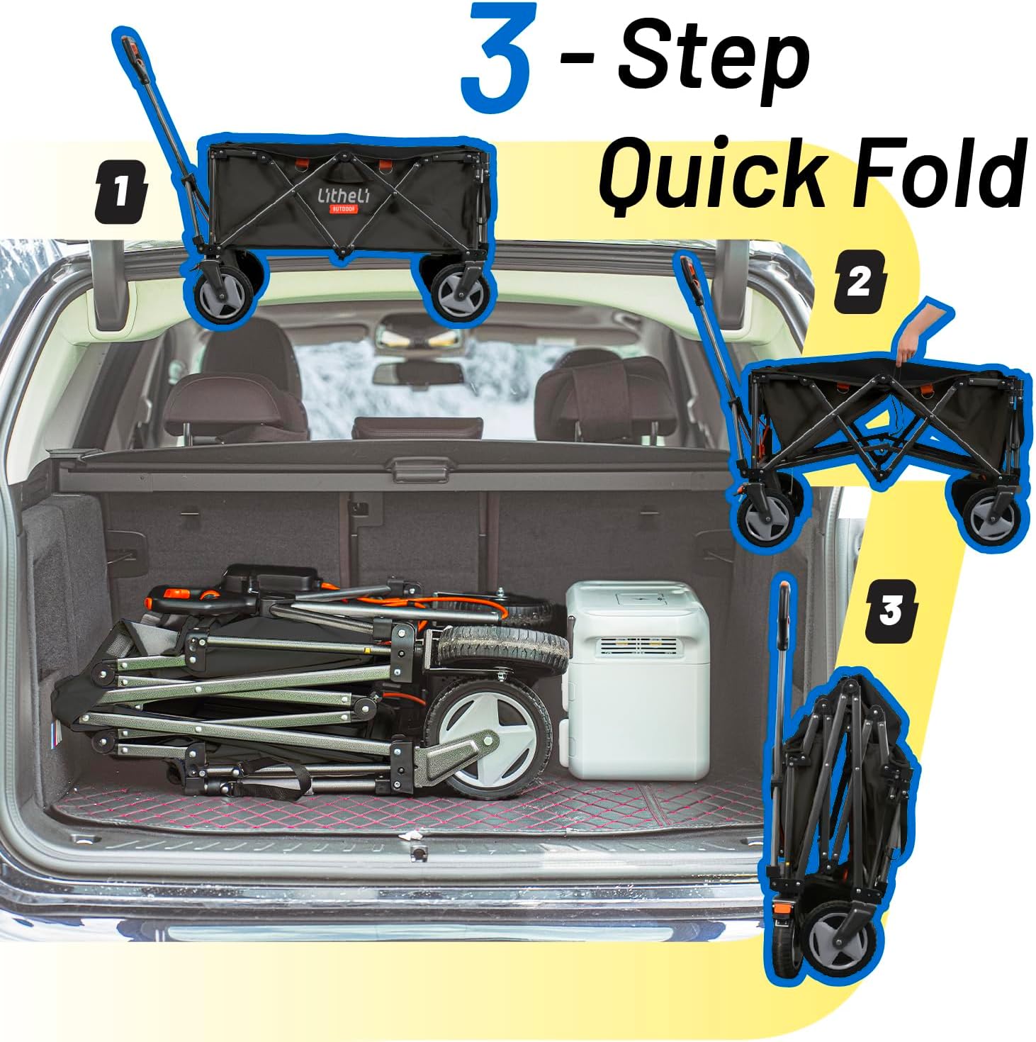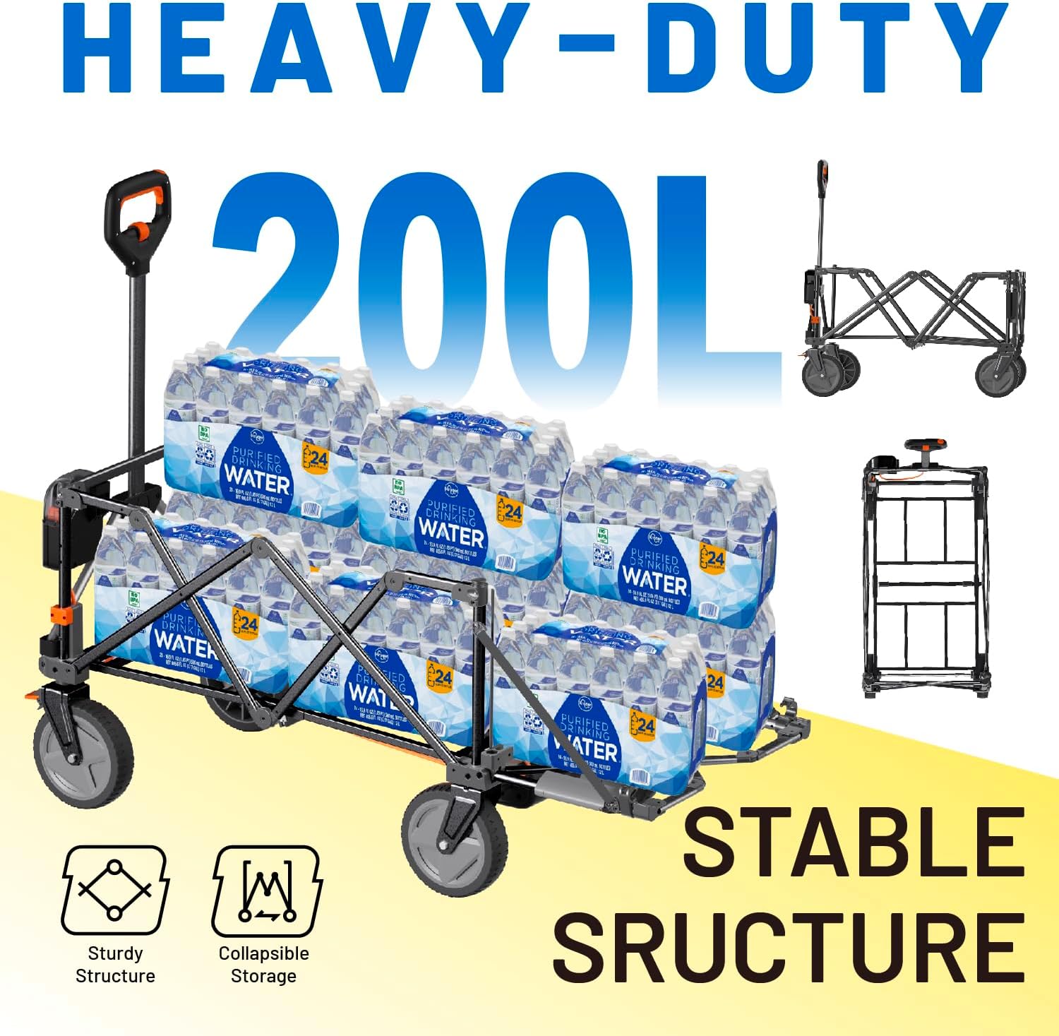 - 【Massive Storage – Haul Everything You Need】 Boasting a 200L capacity and a reinforced tailgate, this utility cart fits tents, fishing rods, groceries, or picnic supplies with ease. It supports up to 300 lbs—ideal for family outings, garden tools, or shopping hauls. Bring more, carry less effort.