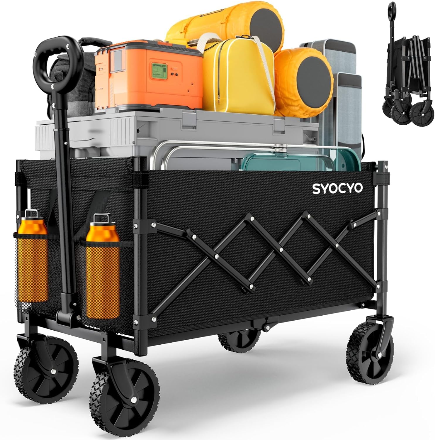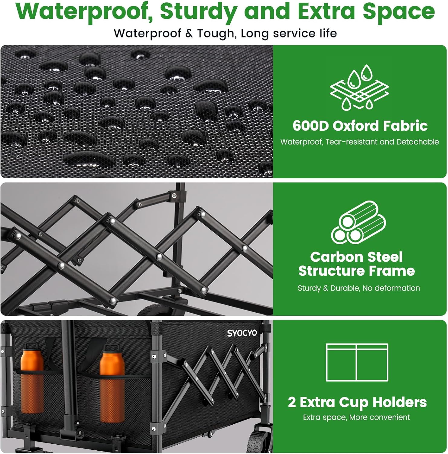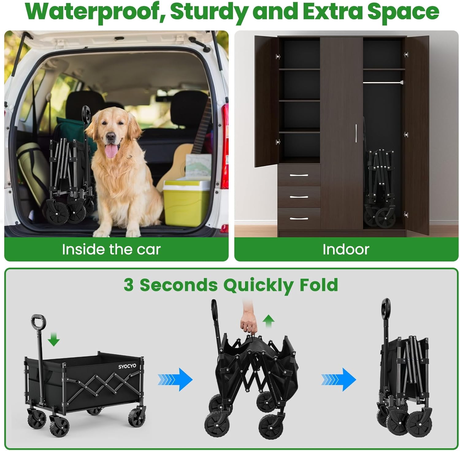 - Superior All-Terrain Performance: Navigate any surface with confidence thanks to four premium all-terrain wheels, featuring two 360° swivel front casters, our wagon conquers every surface from sandy beaches to rocky trails.Whether you're crossing sandy beaches, grassy parks, or uneven pavement, our wagon cart ensures smooth, stable movement in any environment.