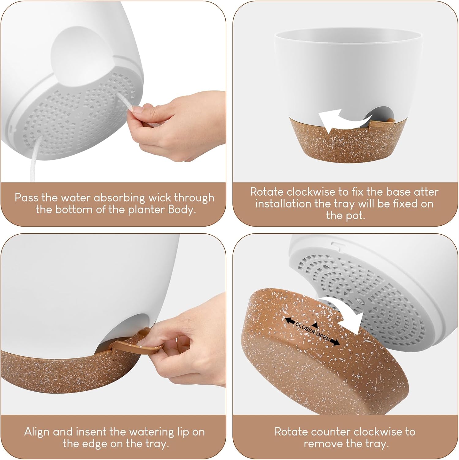 Plant Pots 10/9/8/7.5/7 inch, Self Watering Planters with Drainage Holes & Saucers for Indoor and Outdoor Plants (White)
