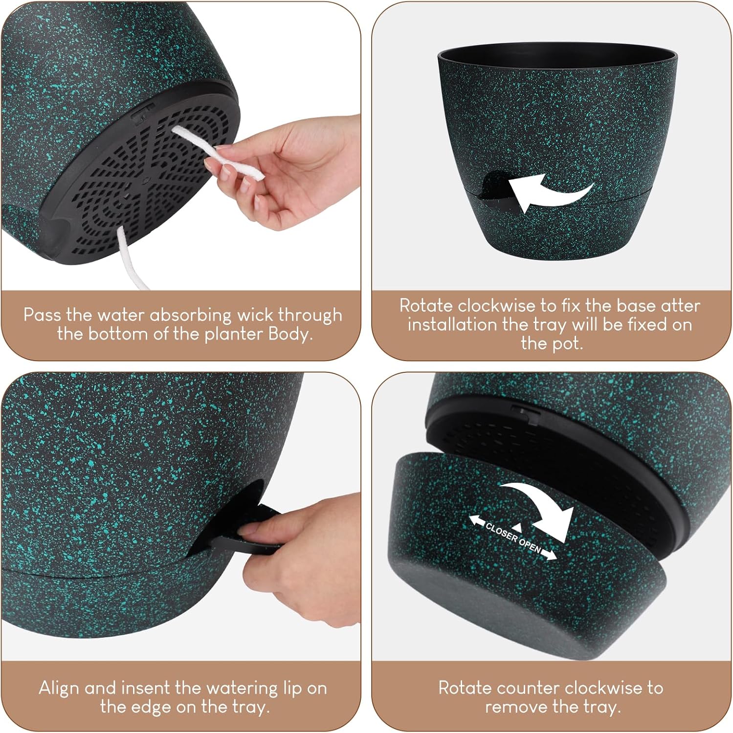 Plant Pots 10/9/8/7.5/7 inch, Self Watering Planters with Drainage Holes & Saucers for Indoor and Outdoor Plants (Green Speckles)