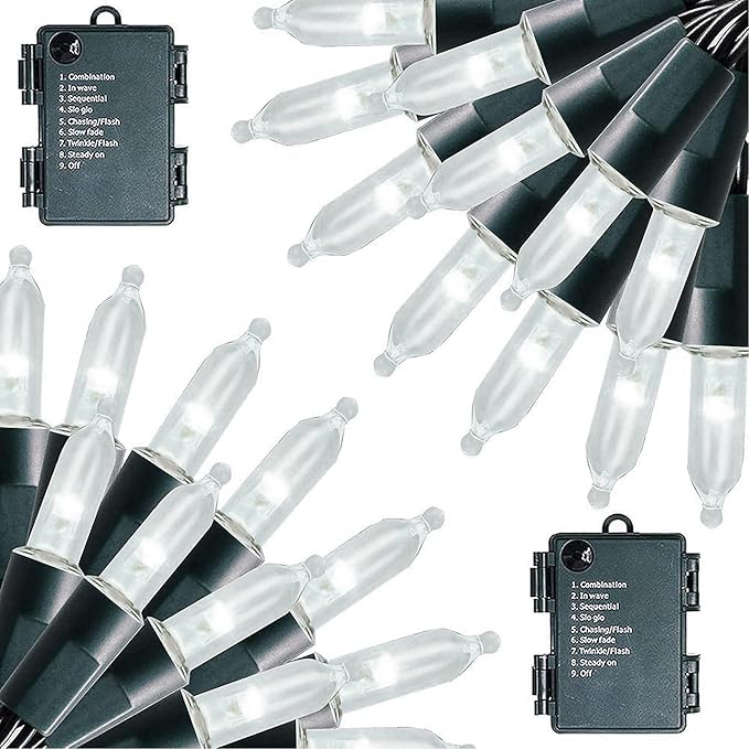 - 8 Lighting Modes: Dazzle Bright mini string lights has 8 different lighting methods, including combination, in wave, sequential, slo glo, chasing/flash, slow fade, twinkle/flash, steady on. Press the button on the battery box to select the lighting mode you like