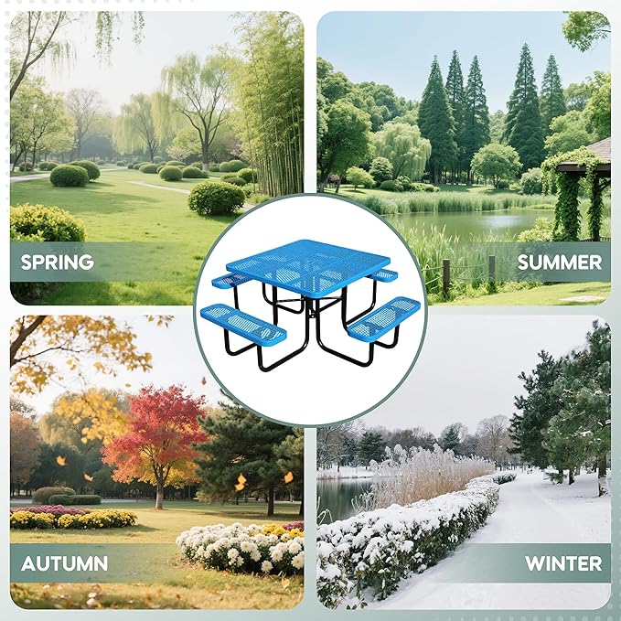 - ☪【Heavy Duty Outdoor Picnic Table】: Sturdy steel structure, outdoor steel picnic table with benches is made of high-quality steel, suitable for all-weather waterproof outdoor surfaces, ensuring that the patio garden picnic table can be used for many years.