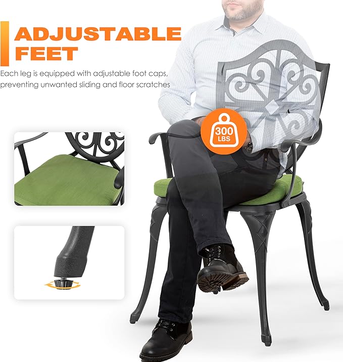 - POWDER-COATED FRAME: The frame is made of high-quality cast aluminum with black and gold powder coating that protects the patio bistro set from getting rusty from all weather, and no fading and no aging ensure its durability for years to come.