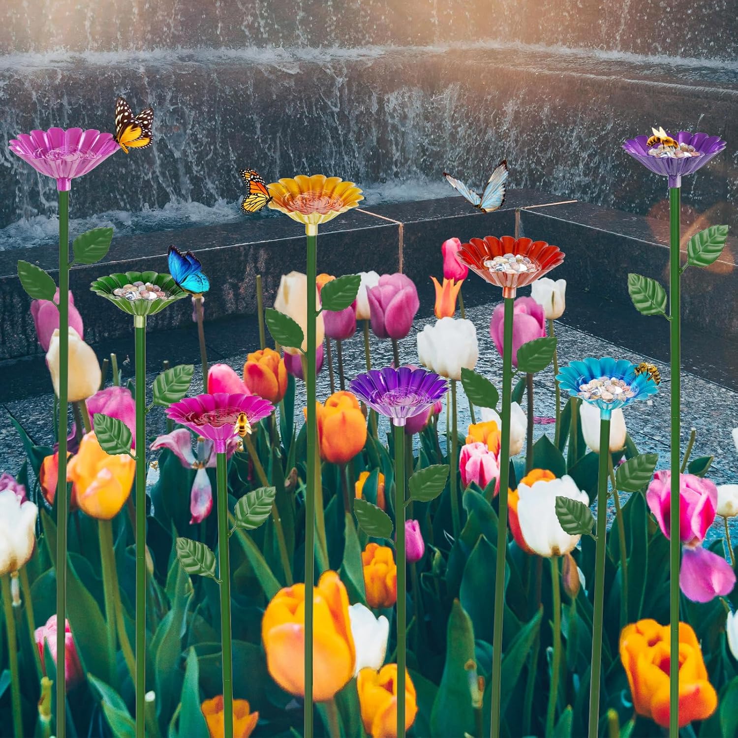 8 Pack Bee Watering Station, Bee Bath for Garden Metal Bee Water Feeder with Flower Design, Colorful Butterfly Bee Bath Bowl for Outdoor Garden Yard Decor