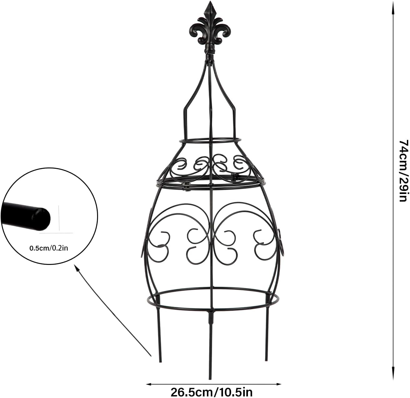 - Elegant & Space-Savvy Dimensions: Standing tall at 29 inches and 10.5 inches wide, this obelisk trellis is designed to fit seamlessly into a variety of outdoor spaces without overwhelming them. Its graceful silhouette, featuring a distinctive tapering shape and a charming decorative top, enhances the aesthetic of your garden while blending harmoniously with the natural environment.