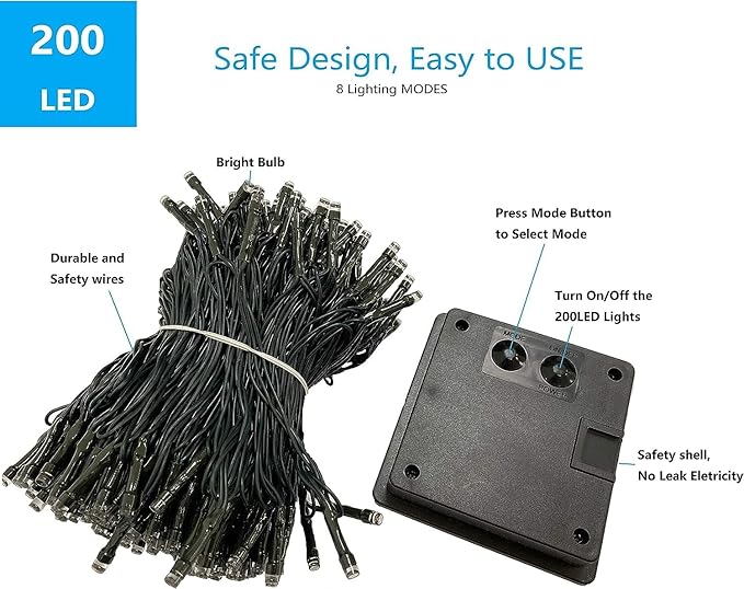 - [Solar String Lights Outdoor Waterproof]:The Christmas Tree Lights has IP65 excellent waterproof performance, and can still emit bright and warm light whether it is rainy or snowy days or cold winter. It is a good choice for decorating outdoor or indoor Christmas trees.