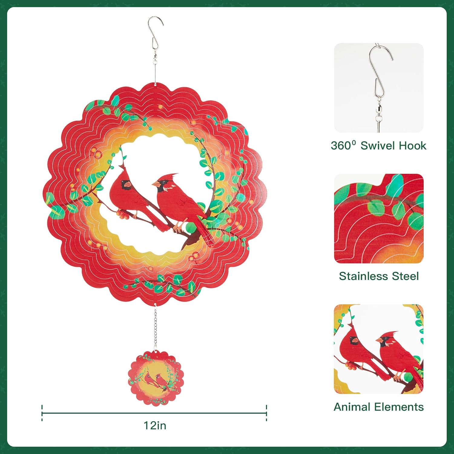 - Exquisite Pattern Design: The outdoor wind spinners features beautifully detailed cardinals that add vibrancy to any outdoor space. Perfect for hanging in your yard, garden, porch, patio or any indoor/outdoor space you desire.