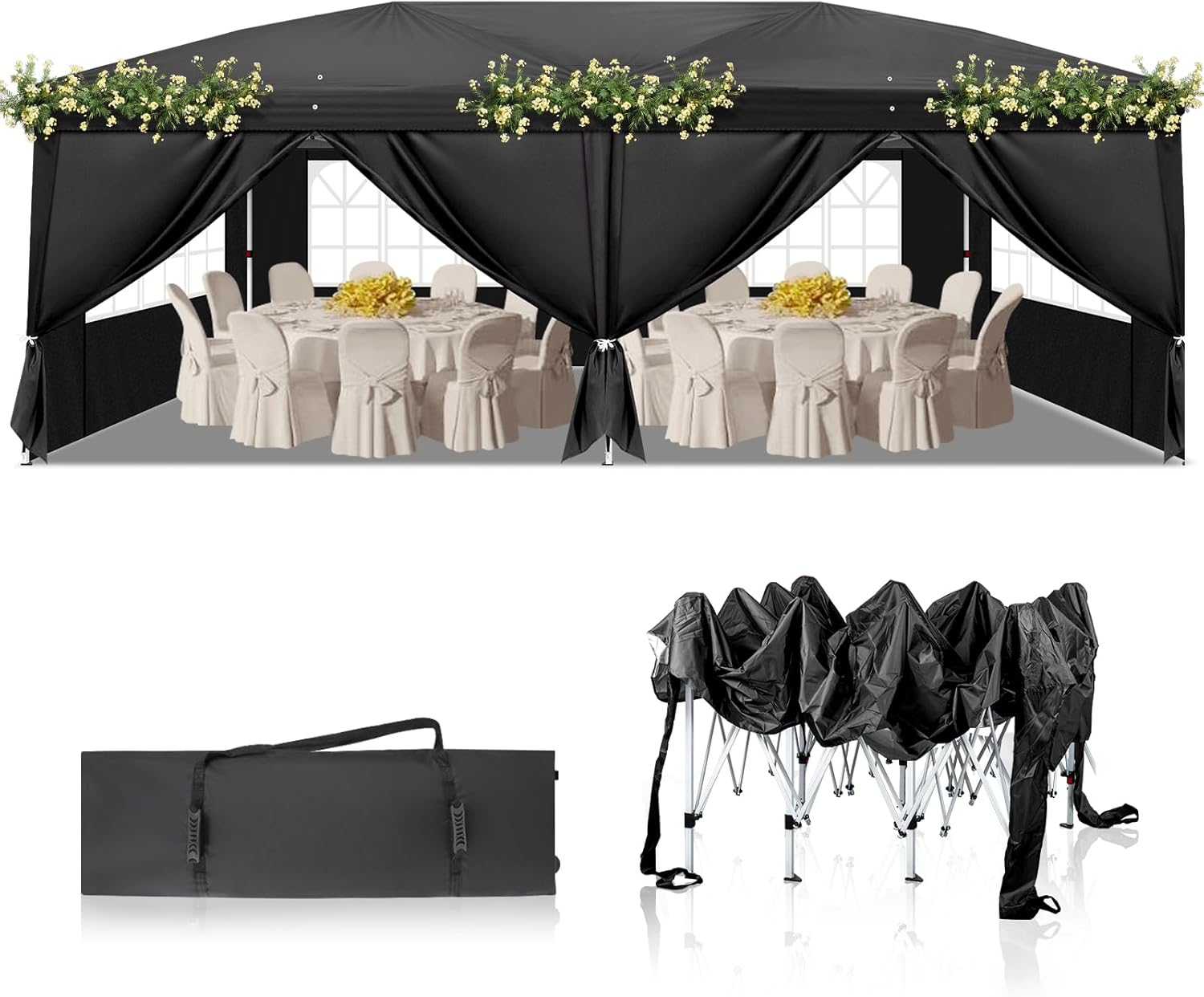 - 【WIDE USAGE】This party tent is perfect for commercial or recreational use like party, wedding, graduation, flea market, small business, outdoor events, patio leisure, backyard, camping, picnics, sporting events, arts and crafts tables and much more