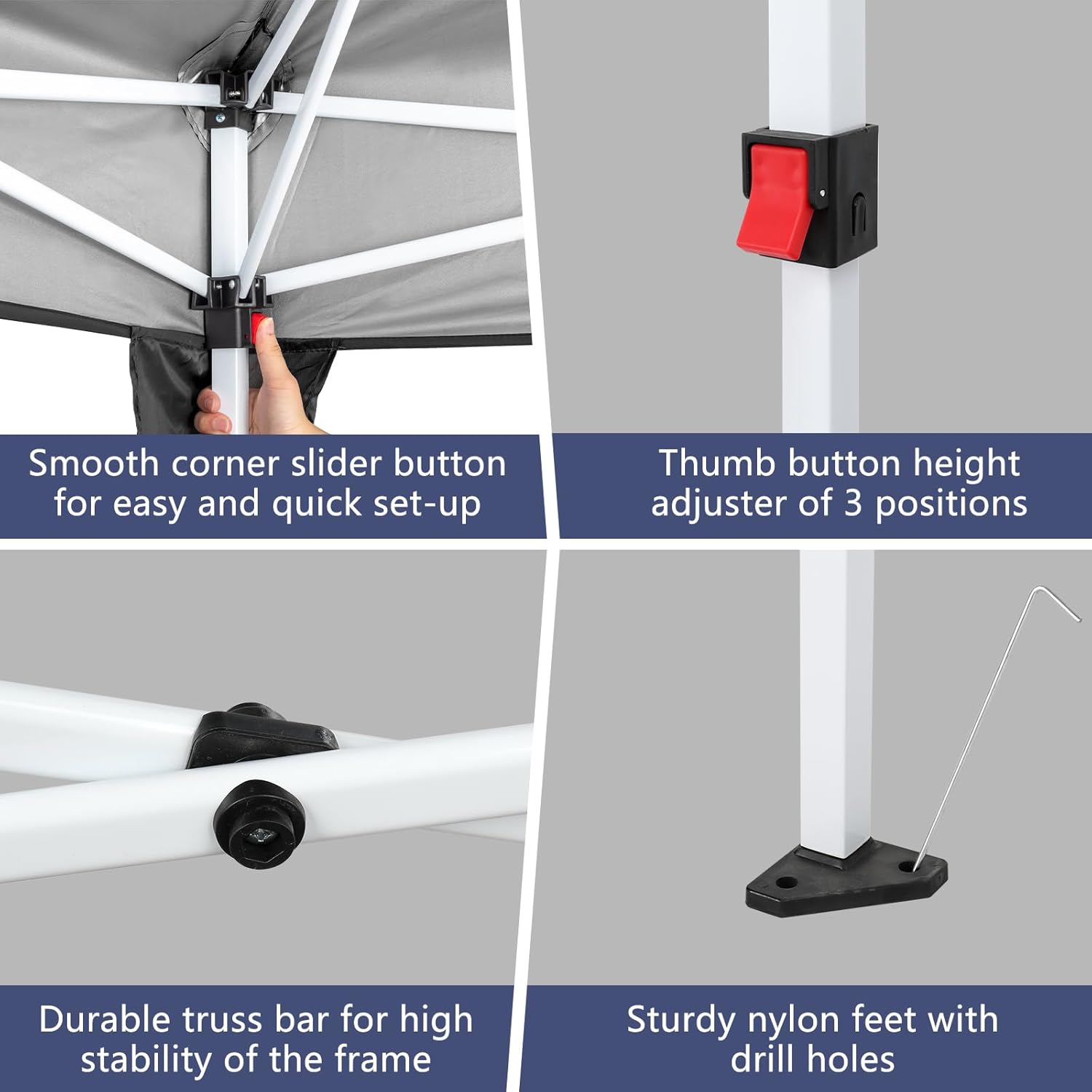 - 【EASY SETUP】Few minutes to set up or take down by one person. Fix the canopy with the frame, then open the foldable frame and adjust the height. Powder coated steel frame is easy to open and collapse down