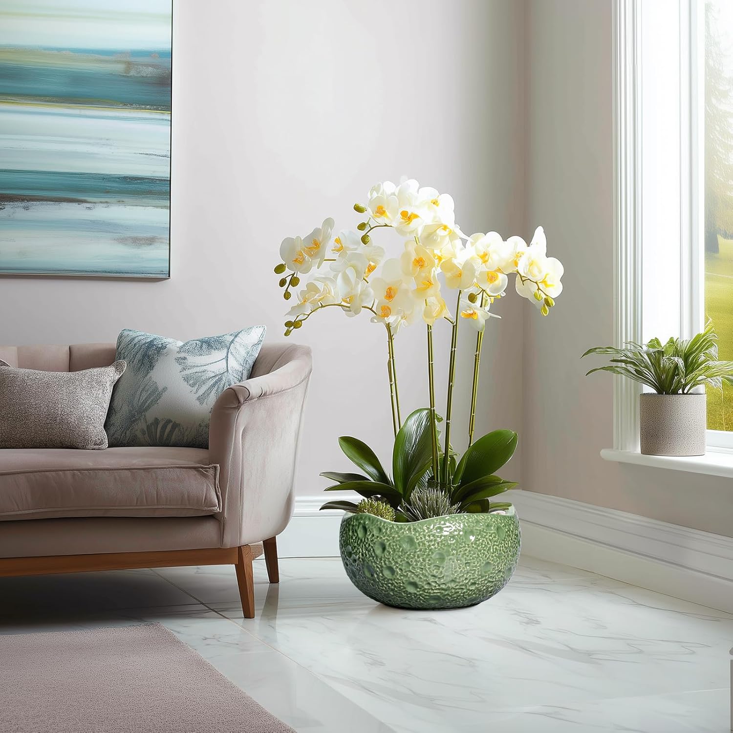 Ceramic Pots for Plants - 13 Inch Large Bonsai Pots Indoor Outdoor, Round Plant Pot with Drainage Hole, Decorative Flower Pot, Modern Unique Planters, Patio Decor, Plant Lover Gifts, Green