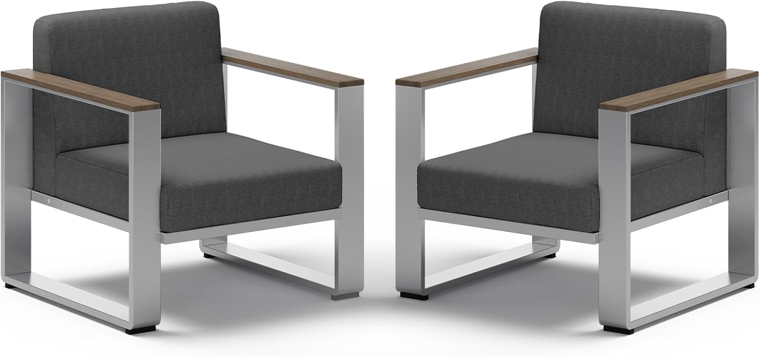 Aluminum Outdoor Patio Furniture, 2 Pieces Armchairs, All-Weather Metal Modern Outside Single Sofa for Deck, Porch (LightGray)