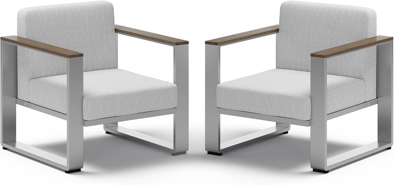 Aluminum Outdoor Patio Furniture, 2 Pieces Armchairs, All-Weather Metal Modern Outside Single Sofa for Deck, Porch (LightGray)