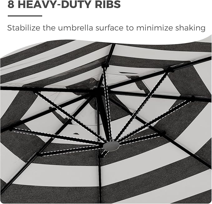 - STABILITY BASE WITH WHEELS: The umbrella has wheels for easy movement. To ensure stability, fill the base with 330 lbs of sand and 44 lbs of water (374 lbs total). For safety in bad weather, close the umbrella into the deadlock position when not in use