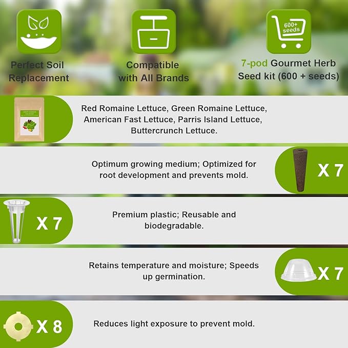 - Universal Compatibility - Our seed pod kits are perfectly compatible with AeroGarden, iDoo, Ahopegarden, MUFGA, and most other hydroponics growing systems. You can easily incorporate our kits into your existing setup or start fresh with confidence. Integrate convenience and reliability with economic viability.