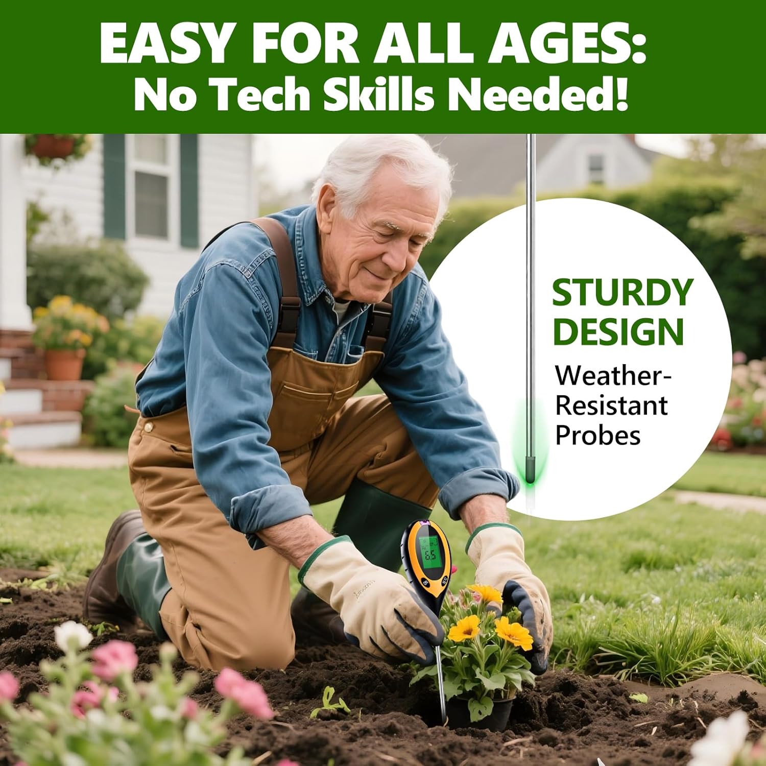 - 【2 PACK + 4-IN-1 MULTIFUNCTIONAL】Get double value with two premium 4 in 1 soil ph tester digital! One for indoor plants, another for outdoor plants. Each unit accurately measures soil pH, Moisture, Temperature & Sunlight - perfect for monitoring multiple garden areas or sharing with a friend.